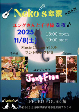 open 19:00 start 20:00 fee ¥1000.(1drink付)